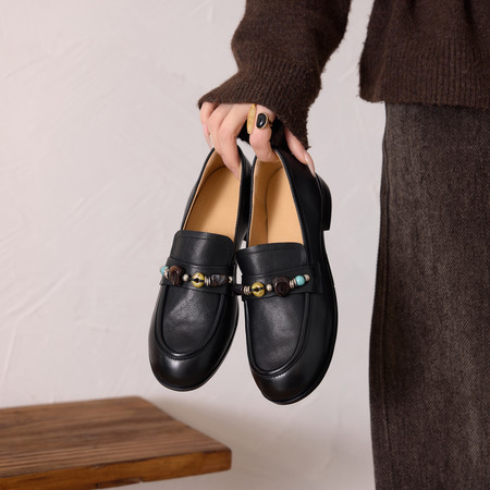 里外全皮 复古简易乐福单鞋